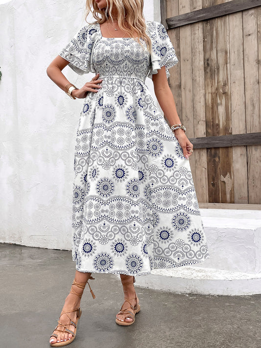 Daisy Delight Butterfly Sleeve Summer Maxi Dress